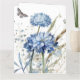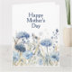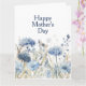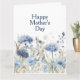 Cartão de Dia das Mães Feliz Floral Azul Moderno e Elegante com tons elegantes de flores azuis com folhagens e borboletas em uma paleta de cores pastéis suaves. Personalize o texto para qualquer ocasião. Deixe a mamãe se deleitar com as belas flores silvestres em aquarela e mostre o quanto você a ama. Perfeito para mamãe, avó, irmã, tia ou madrasta.