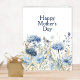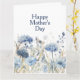 Cartão de Dia das Mães Feliz Floral Azul Moderno e