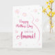 Cartão de dia de as mães grávida de Ammi. Este cartão de Dia de as mães é perfeito para o esperado Ammi em sua vida. (Ammi significa mãe em Urdu.) A futura ammi vai adorar o design floral fofo deste cartão com um desenho minimalista da barriga e flores cor-de-rosa de uma mulher grávida. Diz: "Feliz Dia de as mães para o próximo Ammi! Este cartão de Dia de as mães será batido com qualquer mãe grávida cujo bebê a chamará de Ammi. Torne este cartão personalizável! Clique em "Editar Design", "Dentro Inferior/Direita: Texto e imagens", "Texto" e "Adicionar texto" para escrever a sua própria mensagem personalizada e personalizada no Ammi dentro!