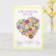 Este Cartão de Dia de as mães tem um belo buquê em forma de coração para alguém especial no Dia de as mães enviará uma mensagem especial para a mulher que você ama. Feito em belas cores primavera de amarelo, lavanda, rosa, azul e verde, com texto roxo, você pode facilmente personalizar a mensagem dentro nesta placa de Dia de as mães ou deixá-la como está.