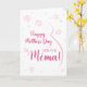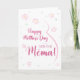 Cartão de dia de as mães grávida Mëma. Este cartão de Dia de as mães é perfeito para o esperado Mema na sua vida. (Mëma significa mãe em albanês.) A futura mëma vai adorar o design floral fofo deste cartão com um desenho minimalista da barriga e flores cor-de-rosa de uma mulher grávida. Diz: "Feliz Dia de as mães à futura Mëma! Este cartão de Dia de as mães será atingido por qualquer mãe grávida cujo bebê a chamará de Mema. Torne este cartão personalizável! Clique em "Editar Design", "Dentro Inferior/Direita: Texto e imagens", "Texto" e "Adicionar texto" para escrever a sua própria mensagem personalizada e personalizada em Mëma dentro!