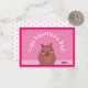 Cartões de Dia de os namorados bonitos de capybara para crianças que entreguem na aula. Frente e centro: ilustração de capybara, com texto curvo sobre "Capy Dia de os namorados!" e corações ao fundo. Bottom tem as etiquetas To e From — o modelo permite que você adicione o nome do seu filho (apague se você quiser deixar o vazio de espaço para que seu filho possa escrever o nome manualmente). Fundo: fundo branco com padrão cor-de-rosa.
