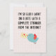Cartões de Dia de os namorados exclusivos: celebrando histórias de amor online! Cartão de Dia de os namorados Internet Stranger: Um cartão de Dia de os namorados exclusivo para a pessoa especial que você conheceu online. "Estou tão feliz por ter ido a um encontro com um estranho da Internet" diz tudo isso com um toque de humor e muito amor.