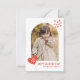 Cartão de Dia de os namorados de sala de aula bonito com seu dentro vertical de fotografia de um quadro de arco com corações vermelhos floreados e um suéter cardíaco XO. Personalize a frente do cartão com fotos Dia de os namorados com uma saudação personalizada e seu nome. A placa reverte para exibir um padrão de sução cardíaca vermelho.