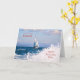 Um iate navegando sobre o oceano com ondas de salto. Um cartão de Dia de os pais divertido para um pai. Uma carta para todos que amam barcos e oceanos. A mensagem dentro pode ser alterada para suas necessidades.