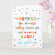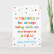 Você chama seu avô Saba, não vovô. (Saba significa avô em hebraico.) Imaginem o quão entusiasmado Saba será receber um cartão de Dia de os pais endereçado especialmente a ele! Seu saba também vai adorar o design brilhante e colorido desta carta que diz "Obrigados por ser sempre tão incrível Saba! Feliz Dia de os pais!" Torne este cartão personalizável! Clique em "Editar Design", "Dentro Inferior/Direito: Texto e imagens", "Texto" e "Adicionar texto" para escrever a sua própria mensagem personalizada e personalizada no Saba dentro!