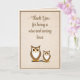 O cartão de dia do chefe feliz com corujas bonitinhas e sábias. Opção para editar o texto deste cartão para um título/função/nome específico e adicionar sua mensagem de dentro. As corujas bonitinhas aparecem na dentro do cartão, assim como na frente.