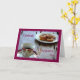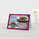Cartão do Dia dos Avós com chá e imagem de migalhas. A equipe é rico, mas a mesa em que ela está sentada é madeira velha.