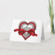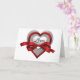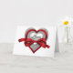 Cartão de Coração de Dia dos Namorados com Coração de Prata e Fita Vermelha de Amor