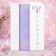 Este cartão de Dia dos Namorados desenhado à mão tem um design pastel sonhador com sotaques roxos, rosa e dourados cintilantes. A letra “VALENTINE” vertical e os contornos de coração criam uma aparência romântica e elegante, enquanto a mensagem interna é totalmente personalizável e perfeita para adicionar suas próprias palavras doces. É justo o que precisa se você está celebrando com um parceiro, amigo ou familiar e torna-se um presente de coração.