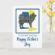 Silhueta de cachorro samoyed em amarelo, azul e preto com padrão de linhas de grade modernas. ‘Para o melhor pai de cachorro’ e ‘Feliz Dia dos Pais’ do lado de fora e uma mensagem adorável dentro que pode ser alterada para o que você quiser. Ótima maneira de celebrar o Dia dos Pais de um amante de animais de estimação.