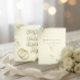 Celebre o amor e a fé com este elegante cartão de duaa de casamento islâmico, apresentando caligrafia árabe, delicadas flores brancas e anéis de casamento dourados. Um design atemporal que combina lindamente tradição e estilo moderno. Perfeito para cerimônias de Nikah, casamentos muçulmanos e bênçãos sinceras para os recém-casados. Personalize para um souvenir único.