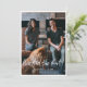 Este simples e na moda moderno anúncio de casamento de fotos, anunciado com o elopemento de cartas planas, modelo apresenta 'Nós amarramos o nó!' em branco em um roteiro moderno que parece quente e familiar. Este elemento do design não pode ser alterado. Quando você substitui nossos nomes de exemplo, data e local abaixo daquele por seu próprio, você também pode alterar a fonte e a cor para se adequar ao seu estilo. a cor padrão também é branca. Embora tenhamos usado apenas nomes no nosso texto de amostra, você pode adicionar um sobrenome, ou 'Sr.s e Sra....' e você também pode editar o símbolo '+' entre os nomes para mostrar um símbolo '&' ou outra coisa. Nós definimos cantos arredondados como a forma padrão, mas esta design também parece excelente com cantos agudos, então tente ambos os modos de edição para ver quais o capturam! E se você preferir uma foto de cheio, você pode remover a borda na frente. No verso, tornamos o fundo transparente para deixar a cor do papel simplesmente servir como o tom base. Você pode editar isso e escolher uma cor se preferir. Colocamos algum texto de marcador de posição no verso para que você exclua e substitua por sua própria mensagem, com ou sem seus nomes, se você quiser assinar manualmente quando receber os cartões. Mas você pode simplesmente optar por excluir nosso texto de marcador de posição e deixar o vazio de trás completamente para que você possa escrever uma mensagem manualmente em cada cartão e assinar seus nomes. Em qualquer caso, lembre-se de que há um texto de marcador de posição no verso, bem como na frente, e apague todo o nosso texto de amostra/marcador de posição em ambos os lados do cartão, assim como nossa foto de exemplo! A cor do texto no verso é um tom de cinza, mas você pode alterar a cor, a fonte e o tamanho do texto. Esperamos que você aproveite o experimento com este design limpo e contemporâneo e o faça exclusivamente seu com as ferramentas intuitivas de design, sua foto favorita e sua inspiração. E por favor verifique nosso compro por cartas de elopemento mais modernas, incluindo este design em formato postal!
