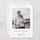 Este simples e na moda moderno anúncio de casamento de fotos, anúncio de um cartão plano, modelo apresenta seus nomes em um roteiro animado, destacado em rosa dourado abaixo de sua foto. Nós definimos cantos arredondados como a forma padrão, mas esta design também parece excelente com cantos agudos. A forma do 'bilhete' tem um talento distinto e é também uma escolha popular. Tente vários modos de edição para ver quais são os seus recursos! Você pode optar por alterar a fonte, a pontuação ou a cor usada para vários elementos de texto deste design na frente e/ou no verso. Por exemplo, você pode optar por dar outra cor ao seu texto de nome, ou mudar o texto WE TIED THE KNOT! acima da foto para WE CASAR! Ou outra mensagem adequada ao seu estilo. Você pode optar por excluir algo ou alterar um campo de texto inteiramente com uma mensagem diferente. Por exemplo, você pode mudar o formato dos nomes para incluir seu sobrenome, ou para o formato Sr. e Sra. (sobrenome), etc. Na frente, tornamos o fundo transparente para deixar a cor do papel simplesmente servir como o tom base. Você pode editar isso e escolher uma cor se preferir. Na parte de trás, escolhemos uma cor de fundo chamada Fumaça Branca, é uma cinza muito clara que é principalmente branca. Você também pode mudar facilmente esta cor se quiser, para outra matiz ou para transparente para mostrar a cor do papel. Colocamos algum texto de marcador de posição no verso para que você exclua e substitua por sua própria mensagem, com ou sem seus nomes, se você quiser assinar manualmente quando receber os cartões. Mas você pode simplesmente optar por excluir nosso texto de marcador de posição e deixar o vazio de trás completamente para que você possa escrever uma mensagem manualmente em cada cartão e assinar seus nomes. Em qualquer caso, lembre-se de que há texto de marcador de posição também no verso e apague todo o nosso texto de amostra/marcador de posição em ambos os lados do cartão, assim como nossa foto de exemplo! A cor do texto no verso é uma cinza clara, mas você pode alterar a cor, a fonte e o tamanho do texto. Esperamos que você goste de experimentar com este design limpo e contemporâneo e o faça exclusivamente seu com as ferramentas intuitivas de design, sua foto favorita e sua inspiração!