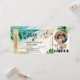Destino de Ilha Tropical Bilhete de Embarque para Casamento na Praia em Ouro com ícone de avião e coração com folhas tropicais. Adicione sua foto