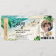 Destino de Ilha Tropical Bilhete de Cartão de Embarque de Casamento na Praia Avião Dourado convite de casamento com coração e ícone de avião com folhas tropicais. Adicione sua foto