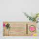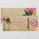 Cartão de embarque da PixDezines para um casamento no destino. Palmas gêmeas vintage e leis de hibisco e plumeria coloridos, em pergaminho falso. O fundo pode ser excluído, você pode adicionar qualquer esquema de cores a ele. Copie e cole para mais flores. Direitos autorais © 2012 PixDezines.com™ e PixDezines™ na zazzle.com