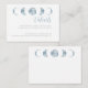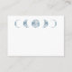 Realce o charme celestial da papelaria do seu casamento com o nosso cartão de inclusão da coleção Minimalist Moon Phases Celestial Blue. Este design exala simplicidade e elegância, apresentando um fundo branco limpo que permite que os elementos celestes brilhem. No centro da parte superior do cartão estão as cinco fases da lua exibidas em uma bela cor azul clara, adicionando um toque de beleza celestial ao design.