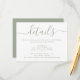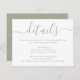 Forneça aos seus convidados detalhes importantes com este elegante cartão de enclausuramento de casamento em verde sage moderno com uma fonte de letra moderna. Itens correspondentes disponíveis. Solicitações personalizadas são bem-vindas.