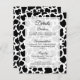 Detalhes do cartão de enclausuramento do convite de casamento. Padrão de fundo de vaca sem emendas preto e branco.