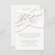 Este cartão de enclausuramento de hotel em caligrafia romântica dourada é perfeito para um casamento simples. O design moderno clássico apresenta espirais sofisticadas e floreios caprichosos com tipografia elegante e manuscrita em falso ouro dourado brilhante.