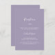 Este cartão de enclausuramento de recepção de lavanda com folha minimal é perfeito para um casamento boho. O design apresenta uma silhueta de folha de verde simples em lilás pastel roxo com estilo de jardim boêmio minimalista. Personalize este cartão de detalhe de recepção com as informações da sua recepção e inclua também o endereço do seu site de casamento!