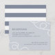 Elegante cartão de enclausuramento de recepção de casamento costeiro apresenta os detalhes da sua recepção em um fundo azul cinza pálido, acentuado nos cantos com laços de corda náutica trançada. Os cartões se invertem para listras náuticas largas.
