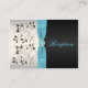 Este cartão de convite de recepção floral prateado, aqua e preto tem uma fita aqua azul impressa e um broche de joia em diamante impresso que seria perfeito para um casamento com tema aqua e preto. Alguns dos papéis podem alterar a cor do design, então use cautela se você escolher um dos tipos de papel além do branco básico mostrado aqui. ALÉM DISSO, se você redimensionar o cartão, ou se você mudar as fontes, ou o tamanho da fonte, parte do design e/ou texto pode ser cortado. Tudo será impresso como você vê no seu monitor. Eu não verei seu cartão, e a Zazzle NÃO irá corrigir nada (erros de digitação, desalinhamento, etc.). O texto e o papel são totalmente personalizáveis. Se você precisar de ajuda com este cartão, por favor me envie um e-mail ANTES de fazer seu pedido. Se você precisar de outros
