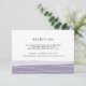Elegantes e modernas, estes cartões de enclave de recepção de casamento apresentam uma borda inferior de linhas geométricas entrecruzadas em branco com uma camada inferior roxa lavanda. Adicione os detalhes da recepção, incluindo horário, local e endereço. Projetado para combinar com nossa suite de casamento Lineation em Ametista.