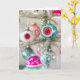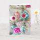 Este cartão de cumprimentos dobrado personalizado apresenta uma coleção magnífica de enfeites rosa e aquamarina em uma árvore de purpurina prateada. Cartão maravilhoso para quem coleciona ou ama Shiny Brites e outros enfeites de Natal em vidro antigo.