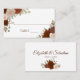 Estes cartões elegantes de escolta são projetados para você escrever no nome do seu convidado e no número da mesa. Eles apresentam um fundo branco clássico com rosas e folhagem pintados manualmente no outono ou em tons de queda de laranja ferrugem e número queimado. A frente é um espaço de gravação para o nome do seu convidado e o número da mesa, e a parte de trás tem os nomes do casal de casamento em letra de rico junto com a data do casamento.
