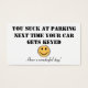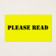 Ok, então isto é mais um presente de mordaça mas ao mesmo tempo quantas vezes tentamos estacionar e a pessoa ao nosso lado estacionou tão terrivelmente que não podíamos estacionar lá? Bem, agora você pode deixá-los saber o quanto eles estacionam. Na frente diz: "Você é péssimo no estacionamento. Da próxima vez que o seu carro ficar chocado" com uma smiley face "Tenha um dia maravilhoso!". No verso, é um amarelo vivo e as palavras dizem "Por favor, leia". Você pode mudar tudo menos o smiley face. Faz um presente excelente ou um presente para você ou para qualquer um.