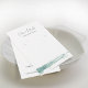 Suporte de exibição de brincos argola com letra moderna e elegante, com dois "marcadores" de furos impressos e faixa esverdeada azulada em estilo aquarela.