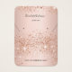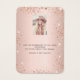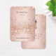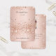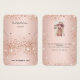 Um cartão para seu brinco ou joias feitos à mão. Um fundo rosa dourado feminino, texto preto. Personalize e adicione seu nome e informações de contato na frente. Decorado com faíscas falsas. Voltar: adicione sua própria foto no verso e use a oportunidade de contar aos seus clientes a história sobre sua marca. Excluir se não desejar.