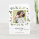 Mande alegria de férias para sua família e amigos. Este cartão de cartões de natal apresenta a cor da água, os frutos vermelhos, os ramos do pinheiro, o eucalipto e as folhas verdes pintados com as palavras "Feliz Natal". Personalize isso alterando a imagem com sua própria foto e texto.