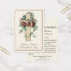 Com uma bela imagem católica tradicional personalizada dos corações de Jesus, Maria e São José, sobreposta a uma cruz floral. Uma oração está no verso para os noivos. Todo o texto e fontes podem ser modificados.
