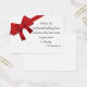 Pratique alguma bondade de casamento quando você arrumar este cartão festivo de doação no local de recepção de casamentos de seus convidados. O cartão de caridade do Casamento no inverno dos Arcos vermelhos festivos afirma que, em vez de um favor tradicional do partido, foi feita uma doação em seu nome à caridade. Personalize-o com o nome da caridade favorita e os nomes pessoais da noiva e do noivo. Estes elegantes cartões de bondade de casamento do inverno personalizado apresentam um design vermelho e branco de arco que se assemelha a um presente de Natal embrulhado.