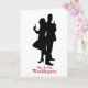 Cartão de felicitações de casamento com a silhueta de um marido e esposa equipe de espiões. Personalize o texto dentro e fora para atender às suas necessidades.