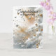 Um cartão de felicitações artístico com um estouro caprichoso de nuvens brancas fofas e esferas aleatórias de vários tamanhos, reminiscente de uma explosão galáctica, ideal para várias ocasiões comemorativas.