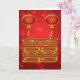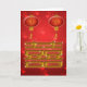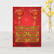 Cartão de Felicitações de Casamento ou Noivado ou Aniversário com Texto de Caligrafia Chinesa Dupla Felicidade em Ouro e Fênix e Dragão em Lanternas