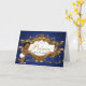 Um pequeno Príncipe está a caminho| Azul Real e Dourado| Elegante cartão de felicitações pelo novo pequeno príncipe com Príncipe Afro-Americano usando coroa dourada