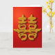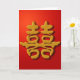 Cartão de Felitações de Casamento com Carácter Dupla Felicidade em Caligrafia Chinesa sobre Fundo Vermelho Auspicioso