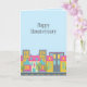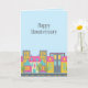 Cartões caprichosos de "Feliz Aniversário de Casa" para marketing de imóveis. O design apresenta um bairro urbano fofo em um fundo azul claro. Perfeito para corretores de imóveis residenciais, credores hipotecários, agências de títulos, serviços de inspeção de imóveis, etc.