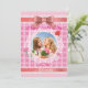 Linda fita de bolinhas e renda circular com cravos em um fundo rosa para expressar seus sentimentos gratos à sua mãe com sua foto personalizável no Dia das Mães.