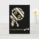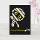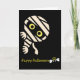 Um cartão de Halloween assustadoramente fofo com um abelhão múmia brincalhão espiando para desejar um alegre “Feliz Halloween!” 🐝🎃