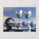 Um cartão de Feliz Natal surrealista com bolas brilhantes e óculos de vinho. Se você está procurando por cartões únicos, talvez este seja o cartão que você quer comprar.