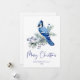 Este cartão de Natal personalizado apresenta um jay azul-aquarela empoleirado em toscas de pínus cobertas de neve com espirros de bagas azuis.