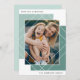 Um design de cartão com fotos de feriado moderno e atraente que apresenta uma foto vertical ou orientada para retratos, enquadrado por blocos de tons sobrepostos em verde-claro e sobreposto com formas de diamante branco para um visual geométrico de blocos coloridos. Personalize com seu cartões de natal personalizado (mostrado com "Feliz Natal"), seu nome de família e o ano.