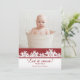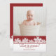 Um cartão fotográfico plano com borda de flocos de neve de papel contra fundo vermelho. Um design não religioso e moderno perfeito para todos na sua lista de mensagens de feriados.