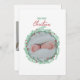 O cartão de anúncio de bebê feriado apresenta uma simples coroa verde. Foto de Fe Ngo